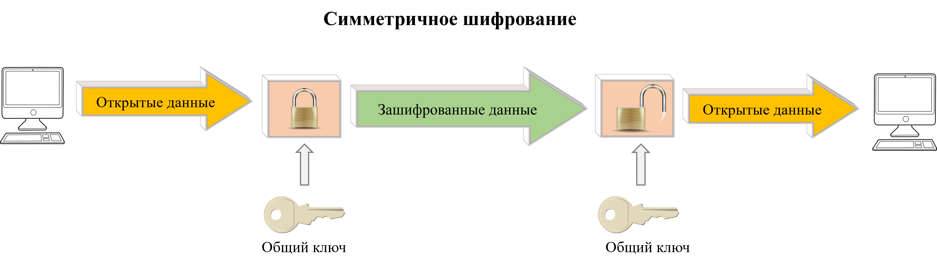 Симметричное шифрование - это когда и для того чтобы зашифровать и для того, чтобы расшифровать сообщение используется один и тот же ключ. Это как если ты положишь свое сообщение в сундучок и закроешь на ключ и только тот, у кого есть копия ключа, сможет его открыть и прочитать. Конечно копиями этих ключей лучше не разбрасываться, а то никакой секретности так не получится. В этом главная проблема симметричных ключей - ими очень сложно делиться.